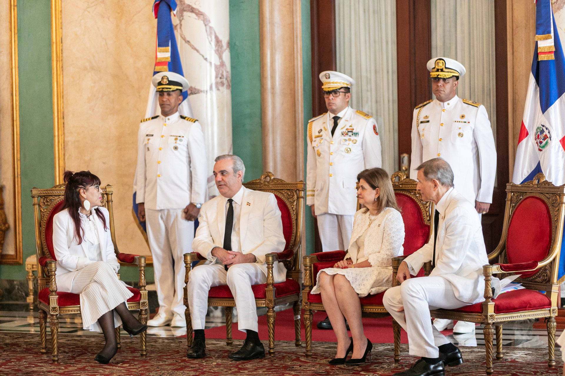 El presidente Luis Abinader y la vicepresidenta Raquel Peña, en compañía del ministro Roberto Álvarez, asistieron al acto de presentación de las cartas credenciales de embajadoras y embajadores que ingresan a realizar sus labores en la República Dominicana. Santo Domingo, República Dominicana, 19 de Diciembre 2024. Vp/ Pedro Rodriguez