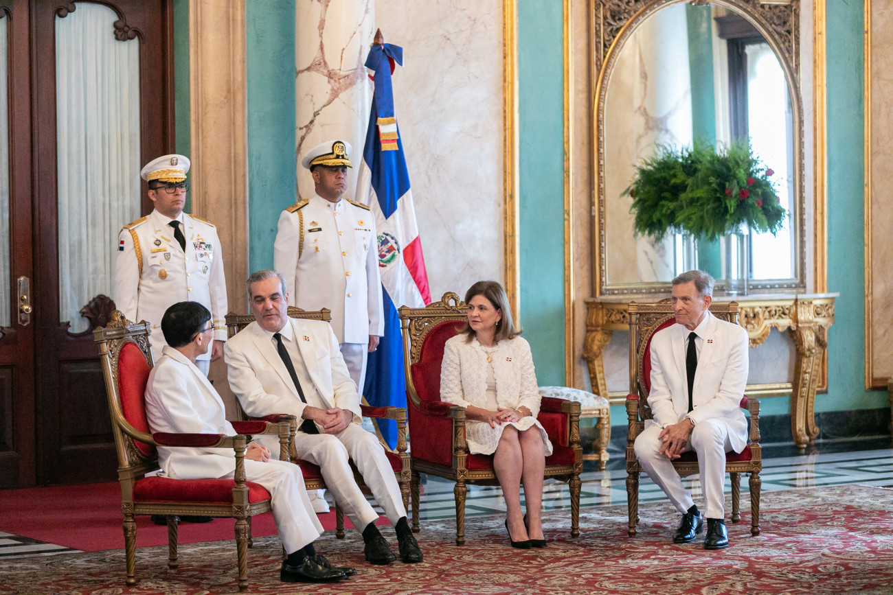 El presidente Luis Abinader y la vicepresidenta Raquel Peña, en compañía del ministro Roberto Álvarez, asistieron al acto de presentación de las cartas credenciales de embajadoras y embajadores que ingresan a realizar sus labores en la República Dominicana. Santo Domingo, República Dominicana, 19 de Diciembre 2024. Vp/ Pedro Rodriguez