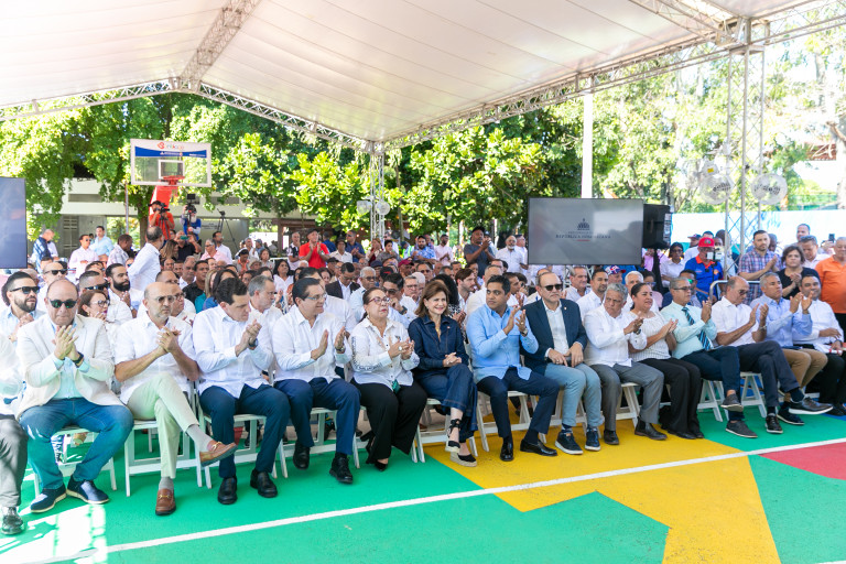 La vicepresidenta Raquel Peña encabezó el primer palazo para los trabajos de construcción del bajo techo del Club Domingo Paulino, un espacio diseñado para que niños, jóvenes y adultos disfruten actividades recreativas y deportivas en un entorno moderno y bien equipado. Santo Domingo, República Dominicana. 15 de Enero del 2024. VP/ Pedro Rodriguez