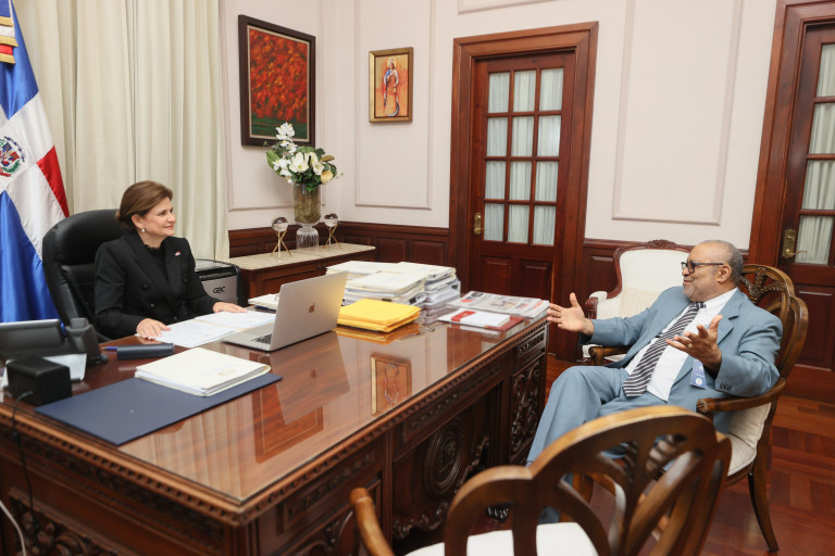La vicepresidenta Raquel Peña recibió la visita de cortesía del señor Rafael Reyes, rector de la Universidad Evangélica Nacional. Durante el encuentro, dialogaron sobre temas de interés común relacionados con la educación. Santo Domingo, República Dominicana. 16 de Enero del 2024. VP/ Félix Hirujo