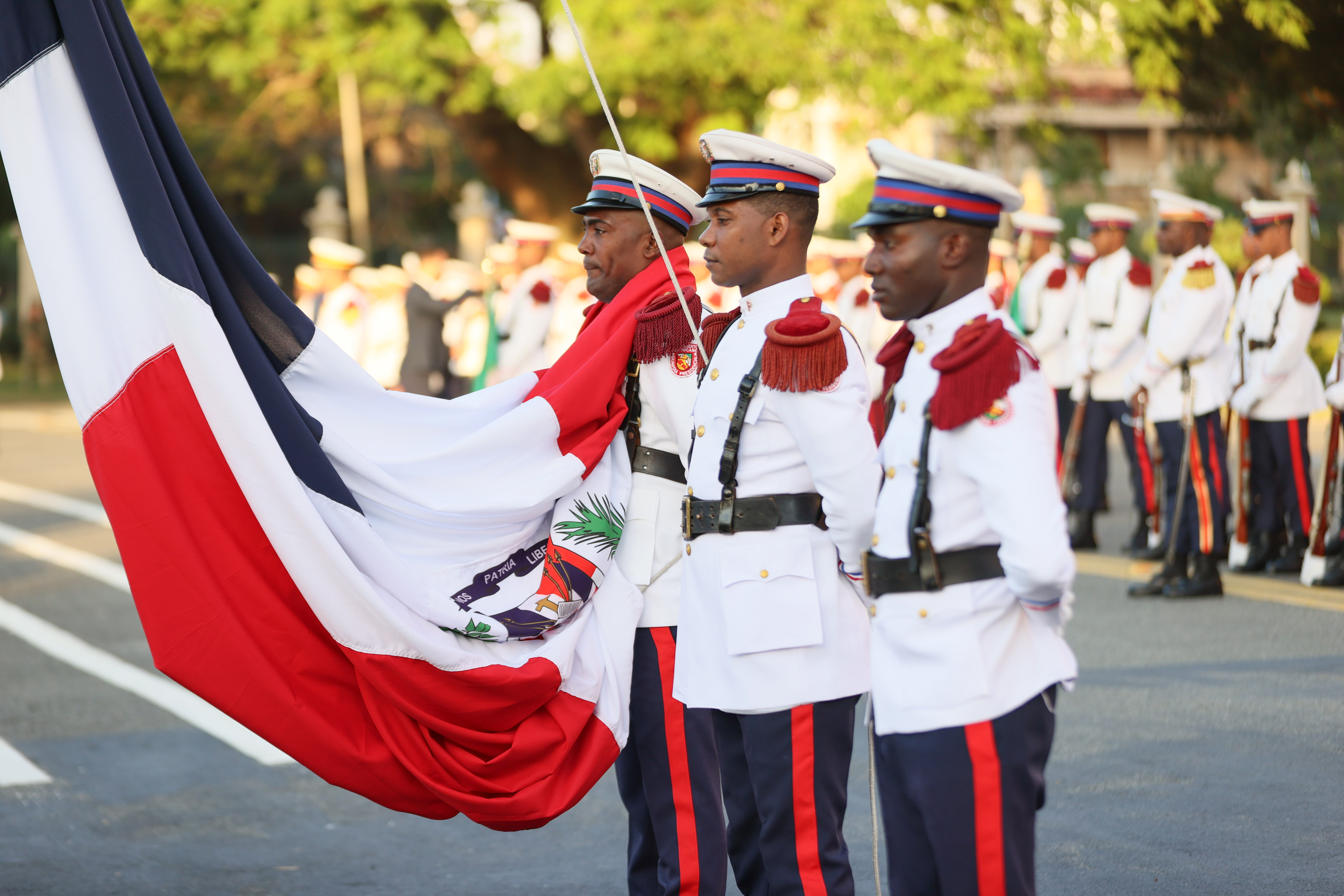 El presidente Luis Abinader, acompañado de la vicepresidenta Raquel Peña y la primera dama Raquel Arbaje, encabezó el acto de homenaje a la bandera dominicana, donde se destacó el valor de nuestra insignia tricolor como símbolo de identidad nacional, en el marco de las actividades conmemorativas del Mes de la Patria. Santo Domingo, República Dominicana. 20 de Febrero del 2025. VP/ Félix Hirujo