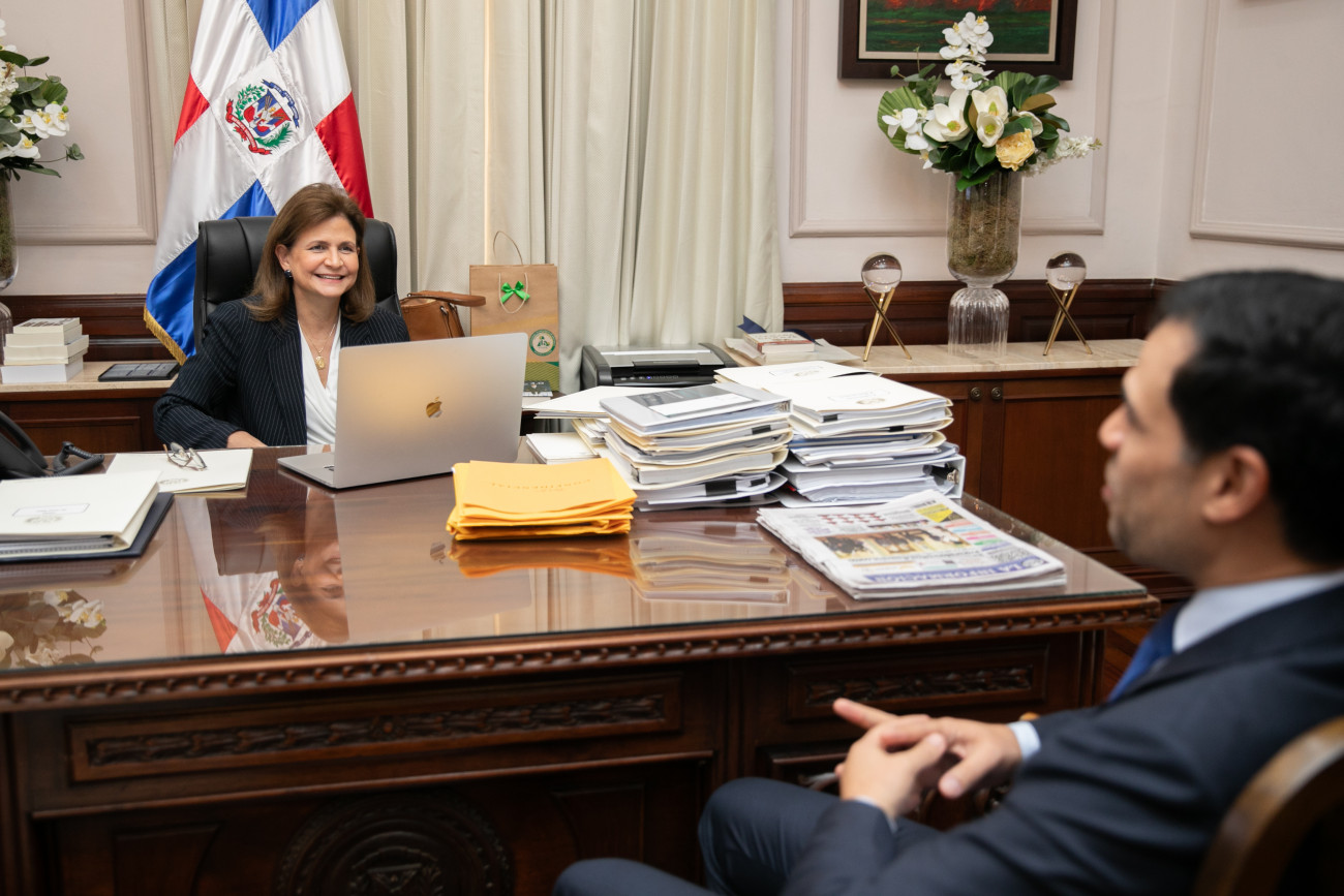 La vicepresidenta Raquel Peña recibió al ministro de Cultura, Roberto Ángel Salcedo, con quien dialogó sobre iniciativas para seguir promoviendo el crecimiento del sector cultural y artístico en la República Dominicana. Santo Domingo, República Dominicana. 25 de Febrero del 2025. VP/ Félix Hirujo