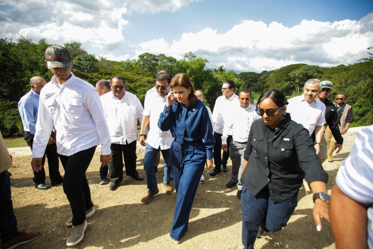 La vicepresidenta Raquel Peña inauguró la construcción de un muro de gaviones para la protección del canal Monsieur Bogaert en La Otra Banda, Santiago. Santiago, República Dominicana. 02 de Marzo del 2025. VP/ Sintia Méndez