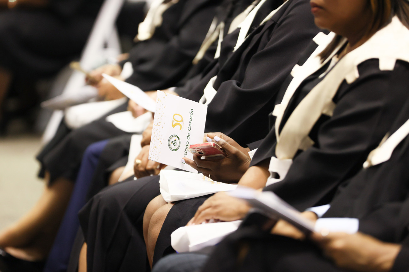 La Universidad Tecnológica de Santiago otorgó el título de Doctor Honoris Causa al presidente Luis Abinader en reconocimiento a su liderazgo y compromiso con el fortalecimiento de la educación superior en el país. En este acto estuvo presente la vicepresidenta Raquel Peña. Santiago, República Dominicana. 8 de Marzo del 2025. VP/ Félix Hirujo