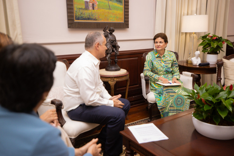 Con el propósito de continuar fortaleciendo proyectos educativos que garanticen los derechos y la protección de niños, niñas y adolescentes en situación de vulnerabilidad, la vicepresidenta Raquel Peña se reunió con Maikel Tadzio Vila Dumit, presidente de la Fundación Acción Callejera. Santo Domingo, República Dominicana. 11 de Marzo del 2025. VP/ Félix Hirujo