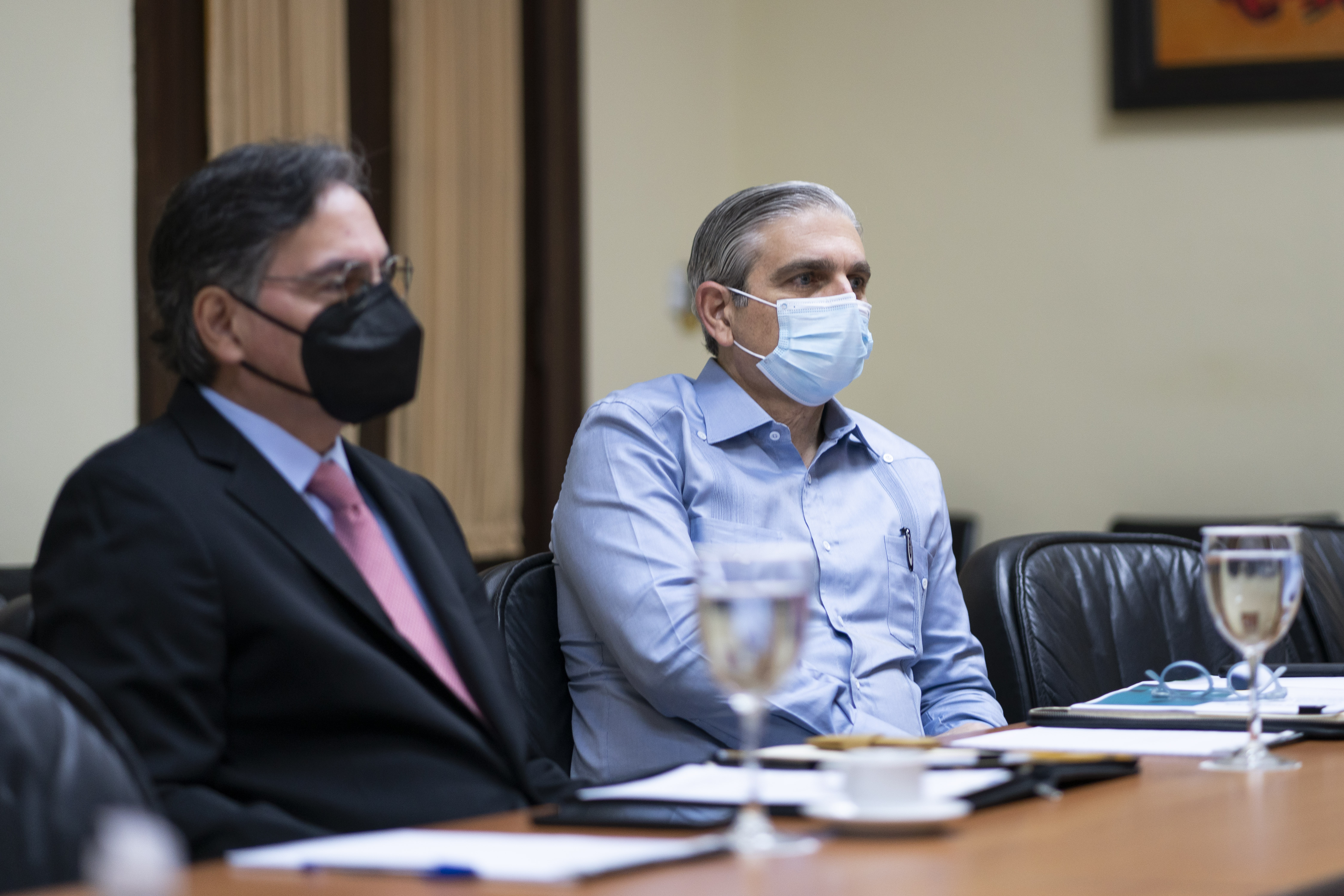 La vicepresidenta Raquel Peña se reúne con el Sr. Michel El Hage, director ejecutivo del Gabinete del Sector Construcción, Dr. Mario Lama, director ejecutivo del Servicio Nacional de Salud, y Sr. Randall Lama, economista. Santo Domingo, República Dominicana. 28 de Enero 2021. Vp/ Jhon Escalante
