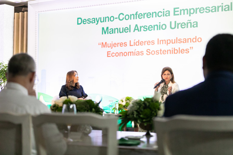 Durante el Desayuno Empresarial Manuel Arsenio Ureña, un espacio de servicio guiado por valores, la vicepresidenta Raquel Peña dictó la conferencia «Mujeres líderes impulsando economías sostenibles», en la que destacó la invaluable contribución de las mujeres dominicanas y su liderazgo en diversos sectores productivos del país. Santo Domingo, República Dominicana, 14 de Marzo 2025. Vp/Pedro Rodriguez