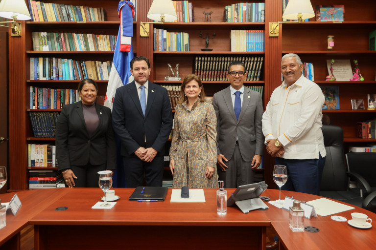 La vicepresidenta Raquel Peña recibió a los senadores Guillermo Lama y Aneudy Ortiz, junto a los diputados Ángel María Sánchez y Yalis Soto. Durante el encuentro, intercambiaron ideas sobre diversos temas de interés común. Santo Domingo, República Dominicana. 24 de Marzo del 2025. VP/ Félix Hirujo