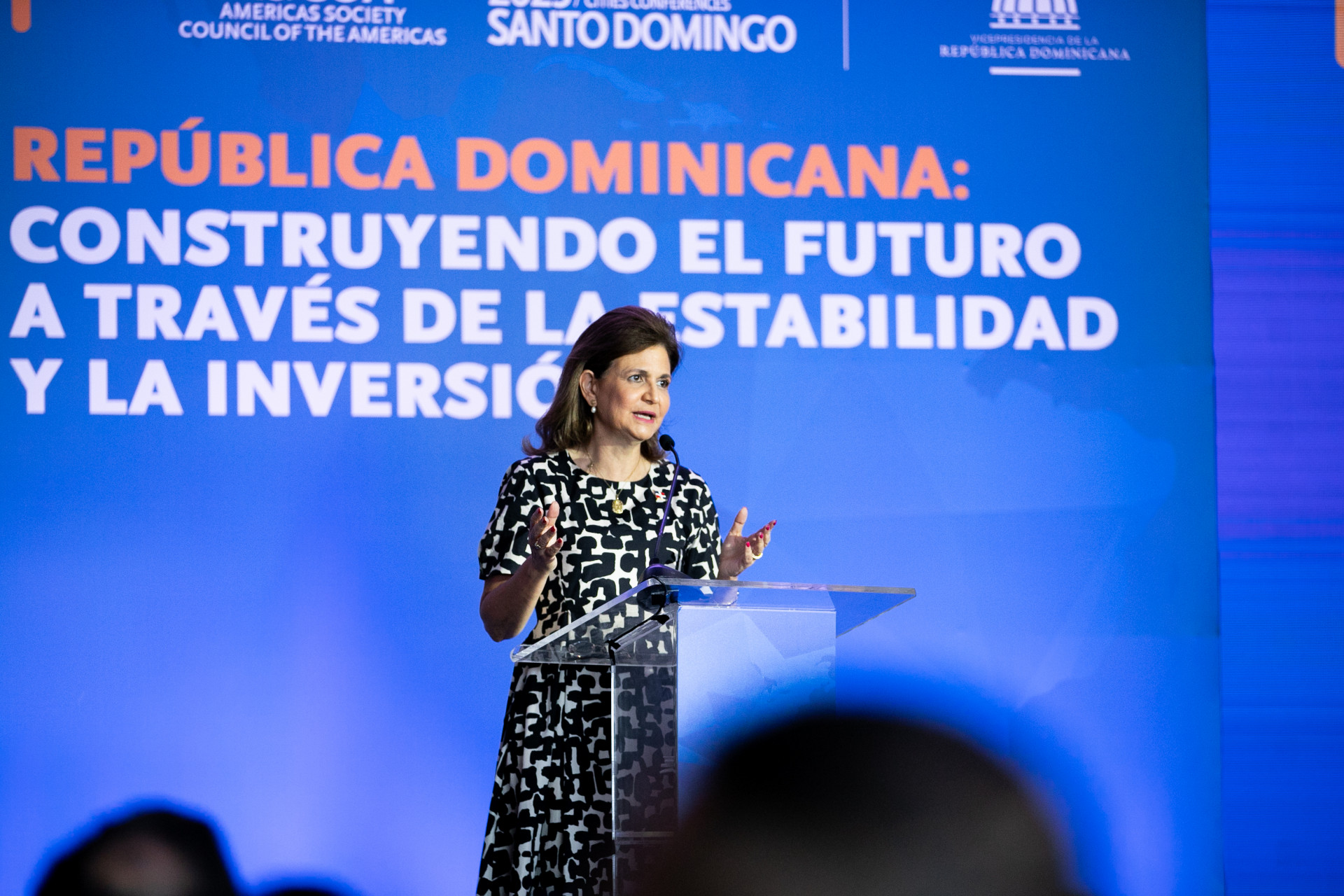 La vicepresidenta Raquel Peña ofreció las palabras de apertura en el evento Americas Society/Council of the Americas 2025, un encuentro clave que reúne a líderes del sector público y privado para analizar el desarrollo sostenible, la transformación digital y la diversificación de inversiones hacia sectores estratégicos. Santo Domingo, República Dominicana. 26 de Marzo del 2025. VP/ Sintia Méndez