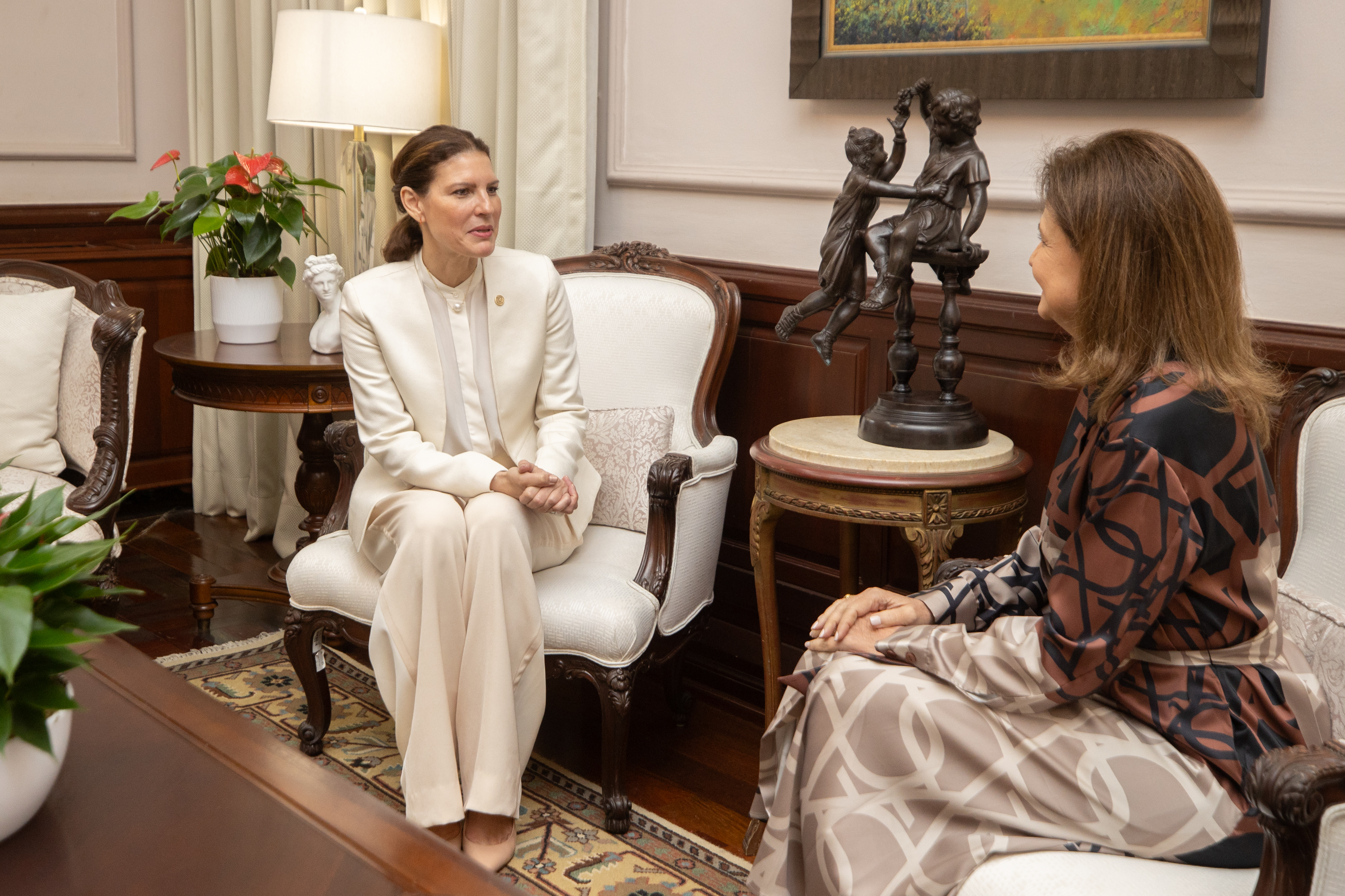 Con el propósito de fortalecer las relaciones diplomáticas y ampliar las oportunidades de cooperación, la vicepresidenta Raquel Peña recibió a la embajadora dominicana designada ante los Estados Unidos de América, María Isabel Castillo. Santo Domingo, República Dominicana. 3 de Abril del 2025. VP/ Félix Hirujo