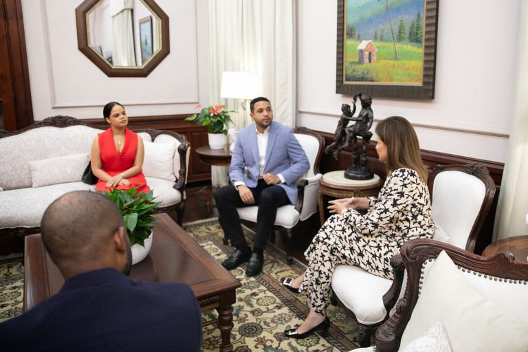 La vicepresidenta Raquel Peña sostuvo un encuentro con el ministro de la Juventud, Carlos Valdez, en el que abordaron iniciativas para generar más oportunidades para los jóvenes y prepararlos para los desafíos del futuro. Santo Domingo, República Dominicana. 04 de Abril del 2025. VP/ Sintia Méndez