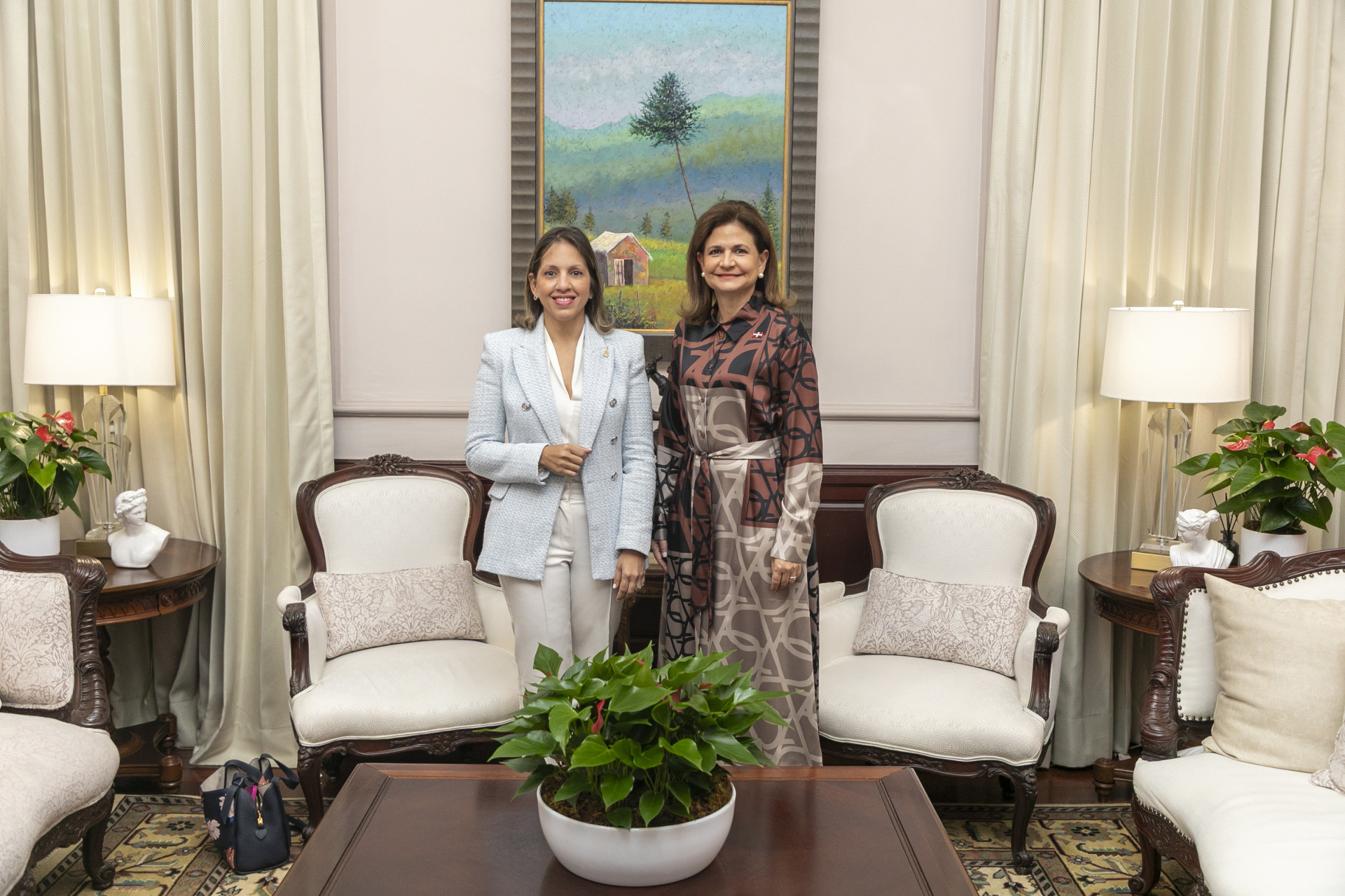 La vicepresidenta Raquel Peña se reunió con María Belisa Ramírez, directora del Monumento a los Héroes de la Restauración, con quien conversó sobre iniciativas orientadas a preservar y promover este importante patrimonio histórico de la nación. Santo Domingo, República Dominicana, 03 de Abril 2025. Vp/Pedro Rodriguez