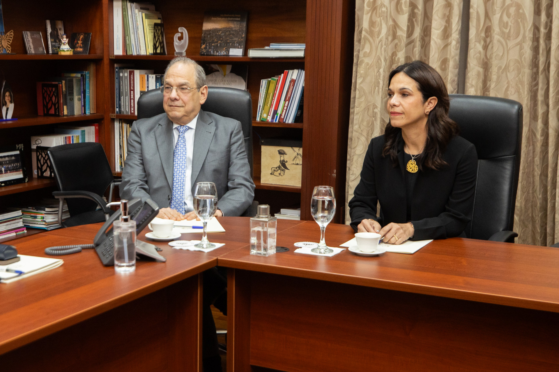 Como parte de su agenda institucional, la vicepresidenta Raquel Peña sostuvo un encuentro con los señores Eduardo M. Trueba, Milton Ray Guevara y otros integrantes de la firma Díaz Trueba Abogados, donde conversaron sobre iniciativas vinculadas a la modernización de los servicios jurídicos, incluyendo la plataforma “Concordium”, orientada a facilitar procesos de conciliación ciudadana. Santo Domingo, República Dominicana. 15 de Abril del 2025. VP/ Félix Hirujo