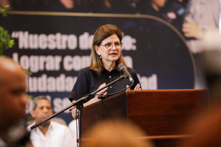 La vicepresidenta Raquel Peña encabezó la ceremonia de graduación de la nueva promoción de la Policia Nacional, donde más de tres mil nuevos agentes tendrán el compromiso de seguir fortaleciendo la seguridad y la cercanía con la ciudadanía. Santo Domingo, República Dominicana. 25 de Abril del 2025. VP/ Sintia Méndez