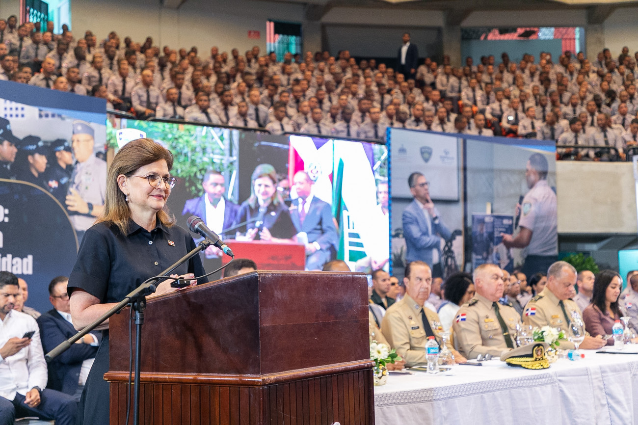 La vicepresidenta Raquel Peña encabezó la ceremonia de graduación de la nueva promoción de la Policia Nacional, donde más de tres mil nuevos agentes tendrán el compromiso de seguir fortaleciendo la seguridad y la cercanía con la ciudadanía. Santo Domingo, República Dominicana. 25 de Abril del 2025. VP/ Pedro Rodríguez