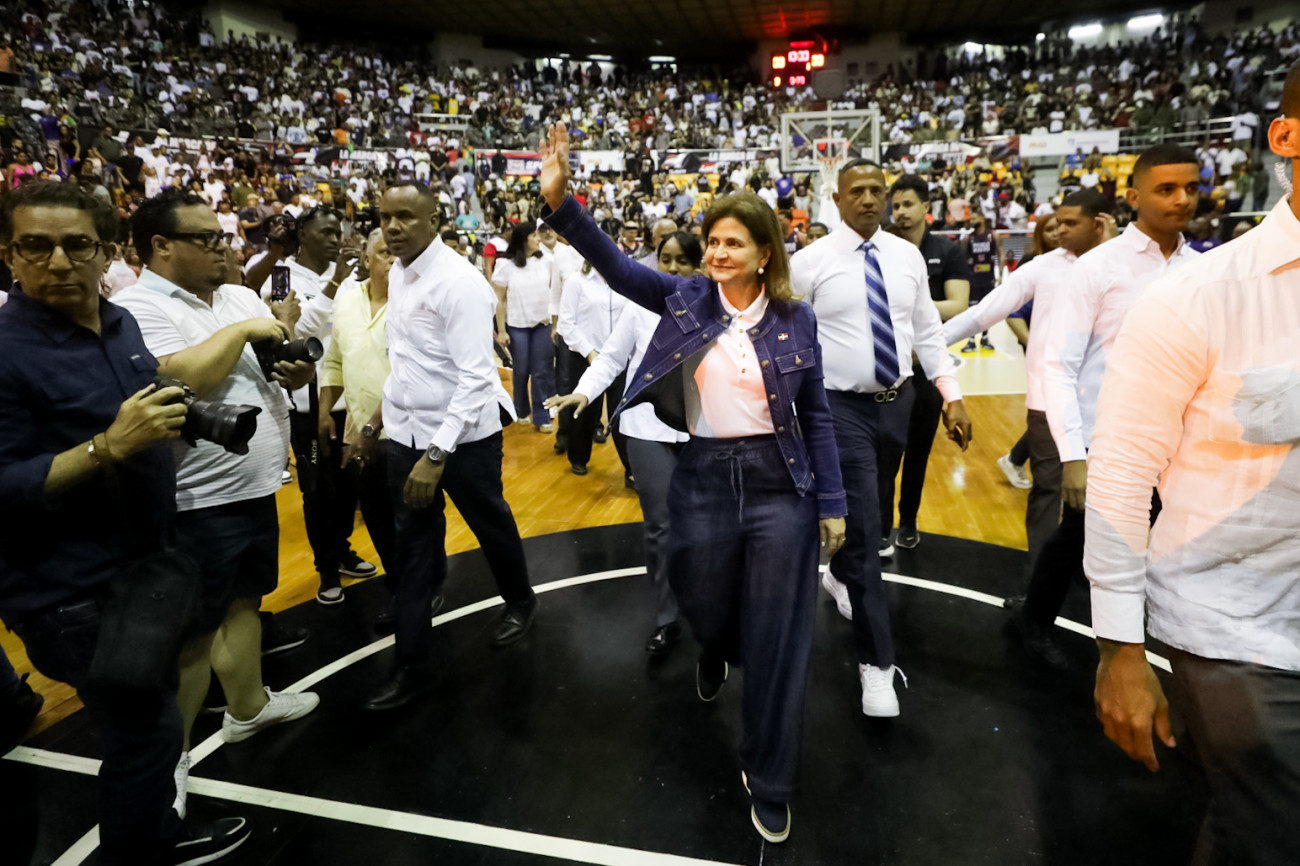 La vicepresidenta Raquel Peña participó en el juego final del Torneo de Baloncesto Superior en la Gran Arena del Cibao en Santiago. Un espacio que fomenta el desarrollo de la juventud dominicana. Santiago, República Dominicana. 07 de Mayo del 2025. VP/ Sintia Méndez