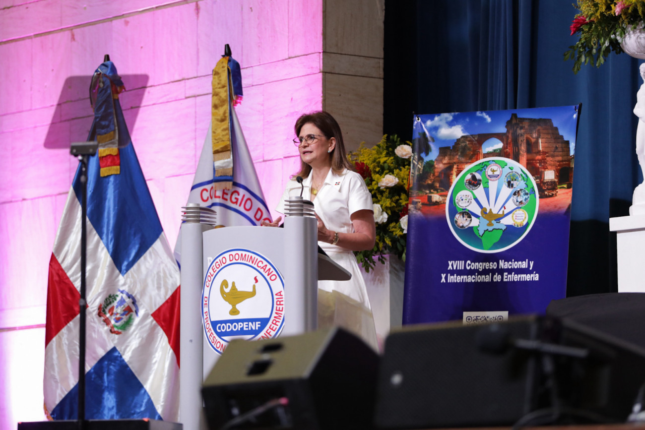 La vicepresidenta Raquel Peña encabezó el acto de apertura del XVIII Congreso Nacional y X Congreso Internacional de Enfermería, un espacio que resalta la vocación, el conocimiento y la humanidad de quienes ejercen una de las profesiones más nobles. La Altagracia, República Dominicana. 08 de Mayo del 2025. VP/ Sintia Méndez