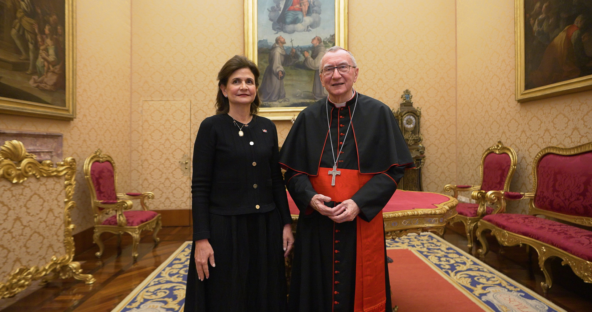 La vicepresidenta Raquel Peña sostuvo un encuentro con Su Eminencia, el cardenal Pietro Parolin, secretario de Estado de la Santa Sede. Santo Domingo, República Dominicana, 16 de Mayo 2025. Vp/ Hector Belén