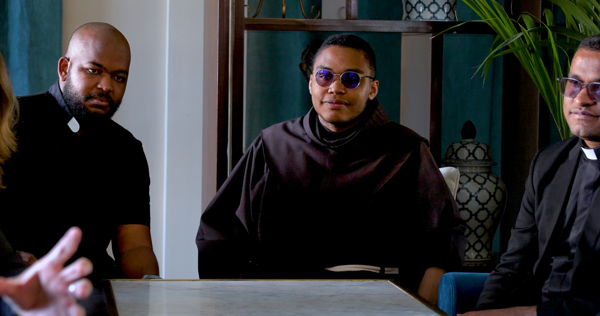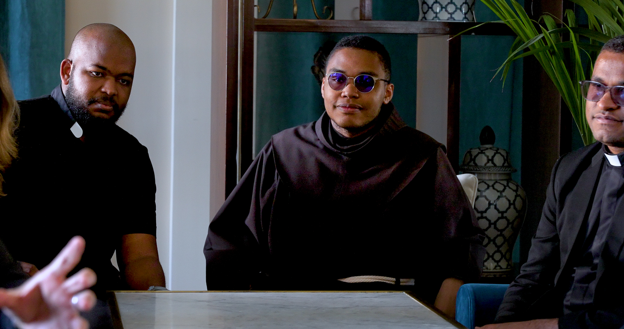 La vicepresidenta Raquel Peña sostuvo en Roma, un encuentro con sacerdotes dominicanos que cursan especialidades enfocadas en el fortalecimiento de la fe. Santo Domingo, República Dominicana, 17 de Mayo 2025. Vp/ Hector Belén