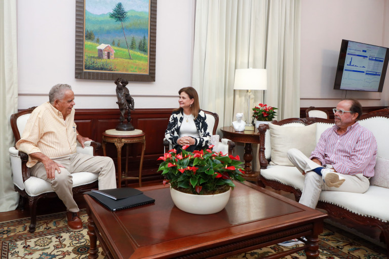 La vicepresidenta Raquel Peña recibió la visita de los señores Rafael Bisonó Genao y Juan Bisonó, con quienes intercambió ideas sobre proyectos orientados a impulsar el desarrollo y el crecimiento del sector inmobiliario en el país. Santo Domingo, República Dominicana, 28 de Mayo 2025. Vp/ Amehd Gitte