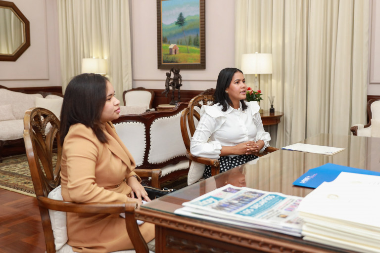 La vicepresidenta Raquel Peña sostuvo un encuentro con la diputada Olfanny Méndez, enfocando el diálogo en proyectos e iniciativas destinadas a fortalecer el desarrollo de la provincia Bahoruco. Santo Domingo, República Dominicana, 5 de Junio 2025. Vp/ Amehd Gitte