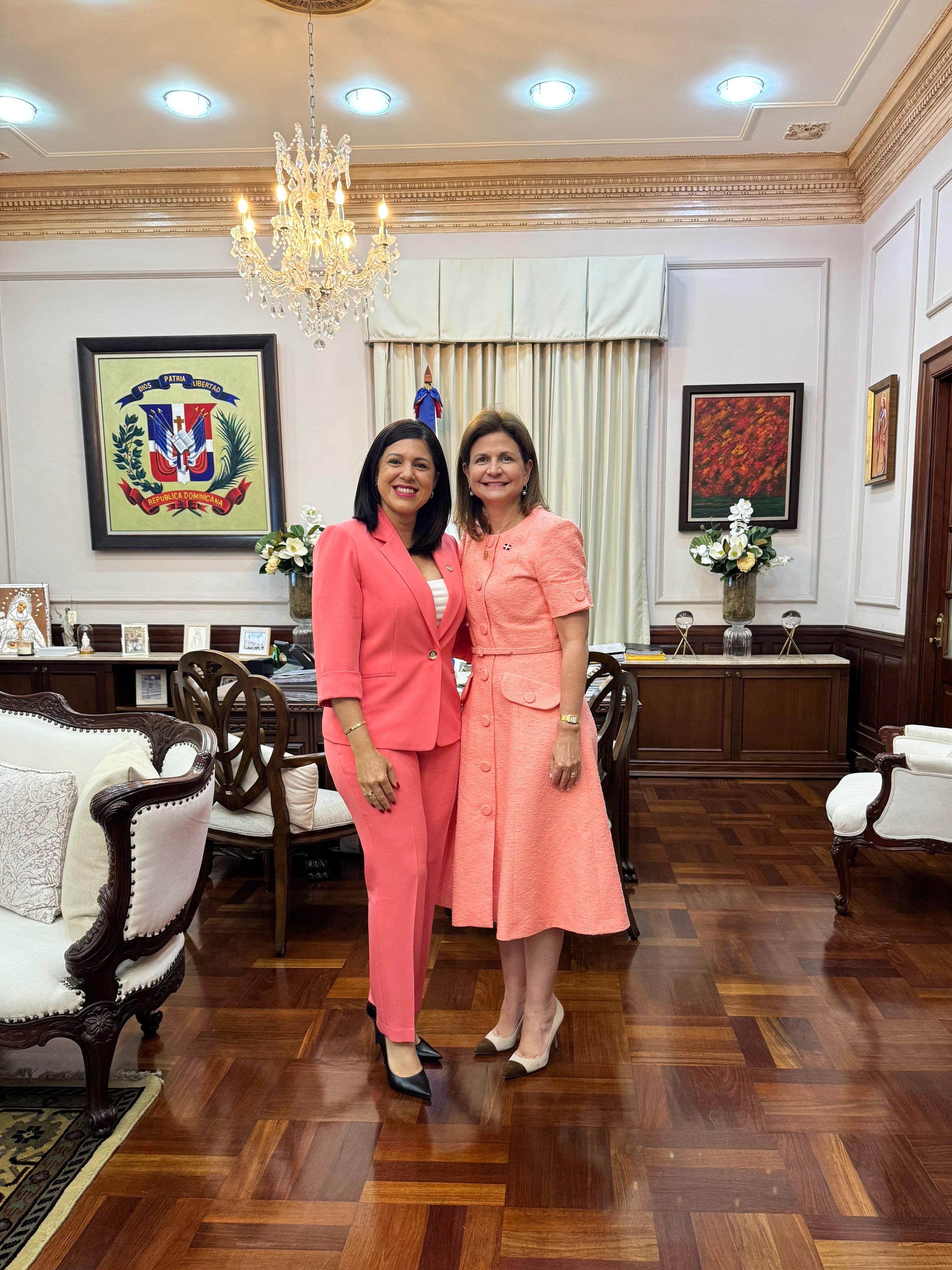 La vicepresidenta Raquel Peña se reunió con la senadora de la provincia Hermanas Mirabal, María Mercedes Ortiz Diloné, con quien conversó sobre proyectos e iniciativas orientadas a seguir impulsando el crecimiento de la provincia. Santo Domingo, República Dominicana. 03 Junio del 2025. VP/ Fuente Externa