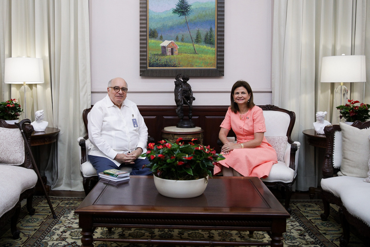 Como parte de su agenda de trabajo, la vicepresidenta Raquel Peña sostuvo un encuentro con el abogado y periodista José Báez Guerrero, con quien conversó sobre temas de interés e iniciativas orientadas a aportar al desarrollo del país. Santo Domingo, República Dominicana. 03 Junio del 2025. VP/ Sintia Méndez
