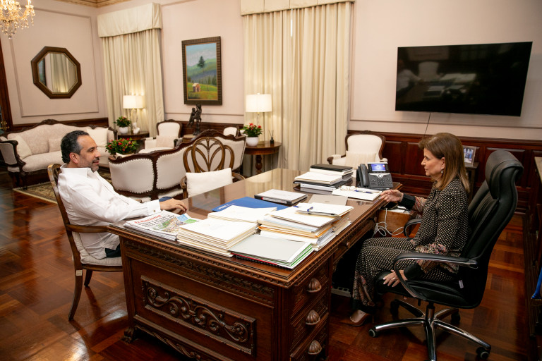 En el interés de seguir promoviendo la formación integral de niños, niñas y jóvenes, la vicepresidenta Raquel Peña sostuvo un encuentro con el director ejecutivo del Instituto Nacional de Educación Física, Alberto Rodríguez, para coordinar proyectos que fortalezcan el desarrollo de disciplinas deportivas en el sistema educativo nacional. Santo Domingo, República Dominicana. 23 Junio del 2025. VP/ Sintia Méndez