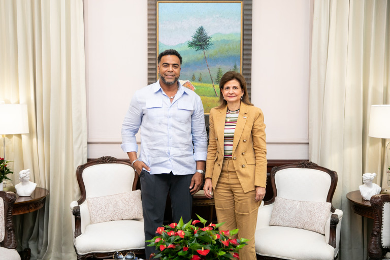 La vicepresidenta Raquel Peña sostuvo un encuentro con el reconocido beisbolista dominicano Nelson Cruz, acompañado de colaboradores vinculados a iniciativas deportivas, con quienes conversó sobre proyectos que impulsen la formación de jóvenes a través del deporte. Santo Domingo, República Dominicana. 30 Junio del 2025. VP/ Sintia Méndez
