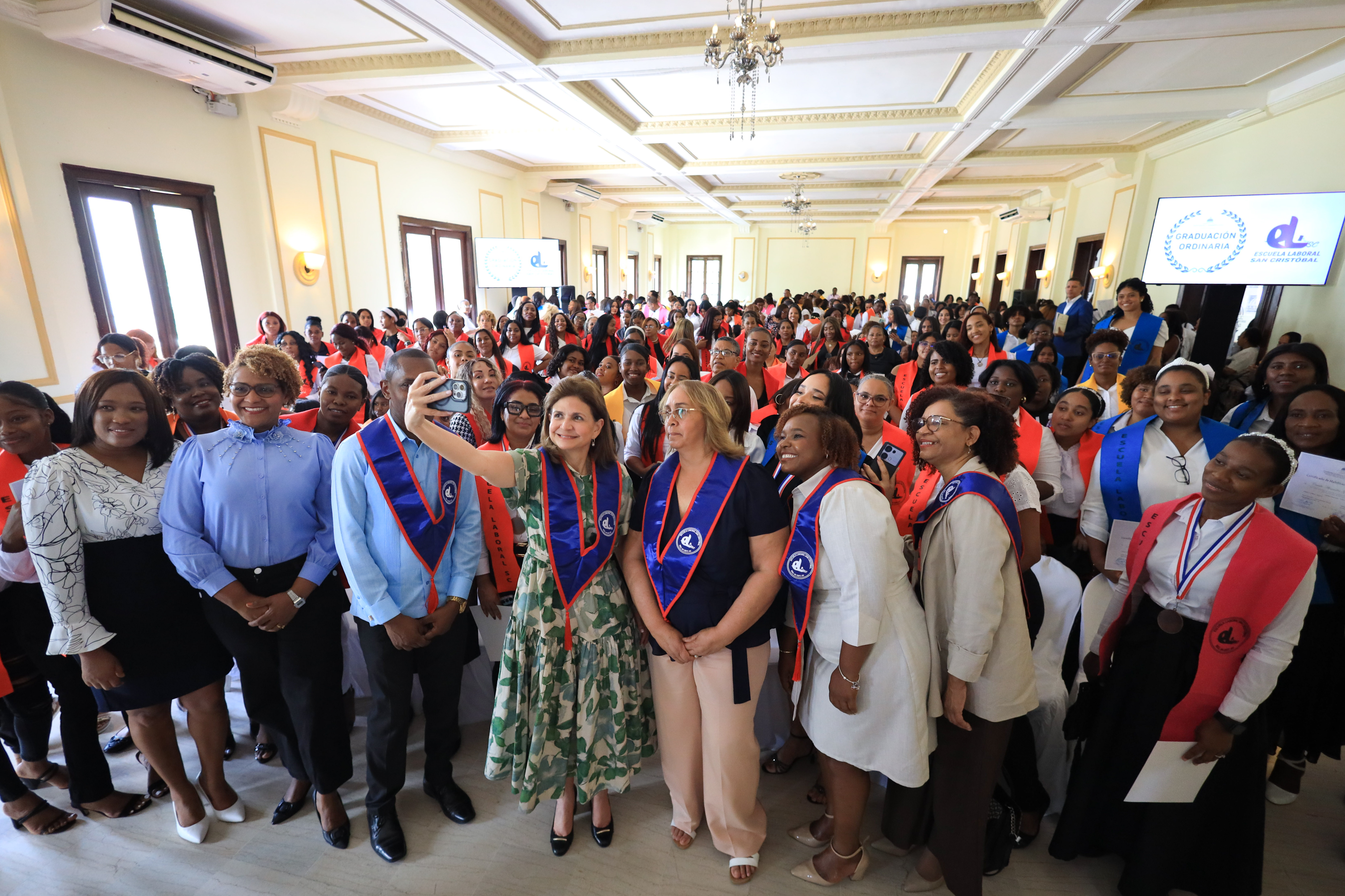 La vicepresidenta Raquel Peña participó en la graduación de la Escuela Laboral de San Cristóbal, uno de los centros coordinados por el Ministerio de Educación, que capacitan a jóvenes y adultos en distintas áreas para apoyar su crecimiento personal y profesional. Santo Domingo, República Dominicana, 27 de Junio 2025. Vp/ Amehd Gitte