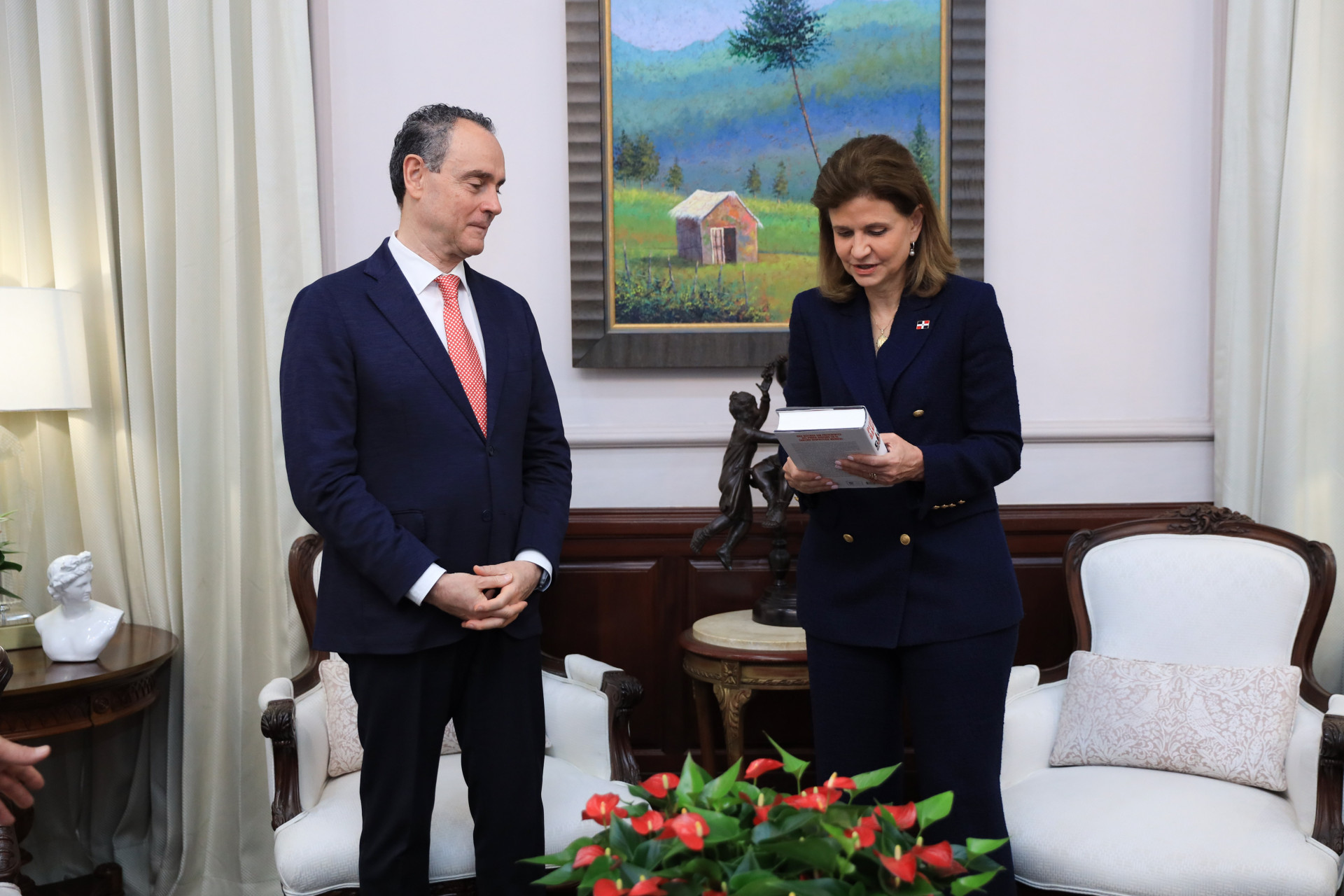 La vicepresidenta Raquel Peña recibió la visita del escritor español Pedro Baños, con quien dialogó sobre la importancia de seguir fomentando la literatura y la escritura como herramientas para el desarrollo personal y colectivo. Santo Domingo, República Dominicana, 26 de Junio 2025. Vp/ Amehd Gitte