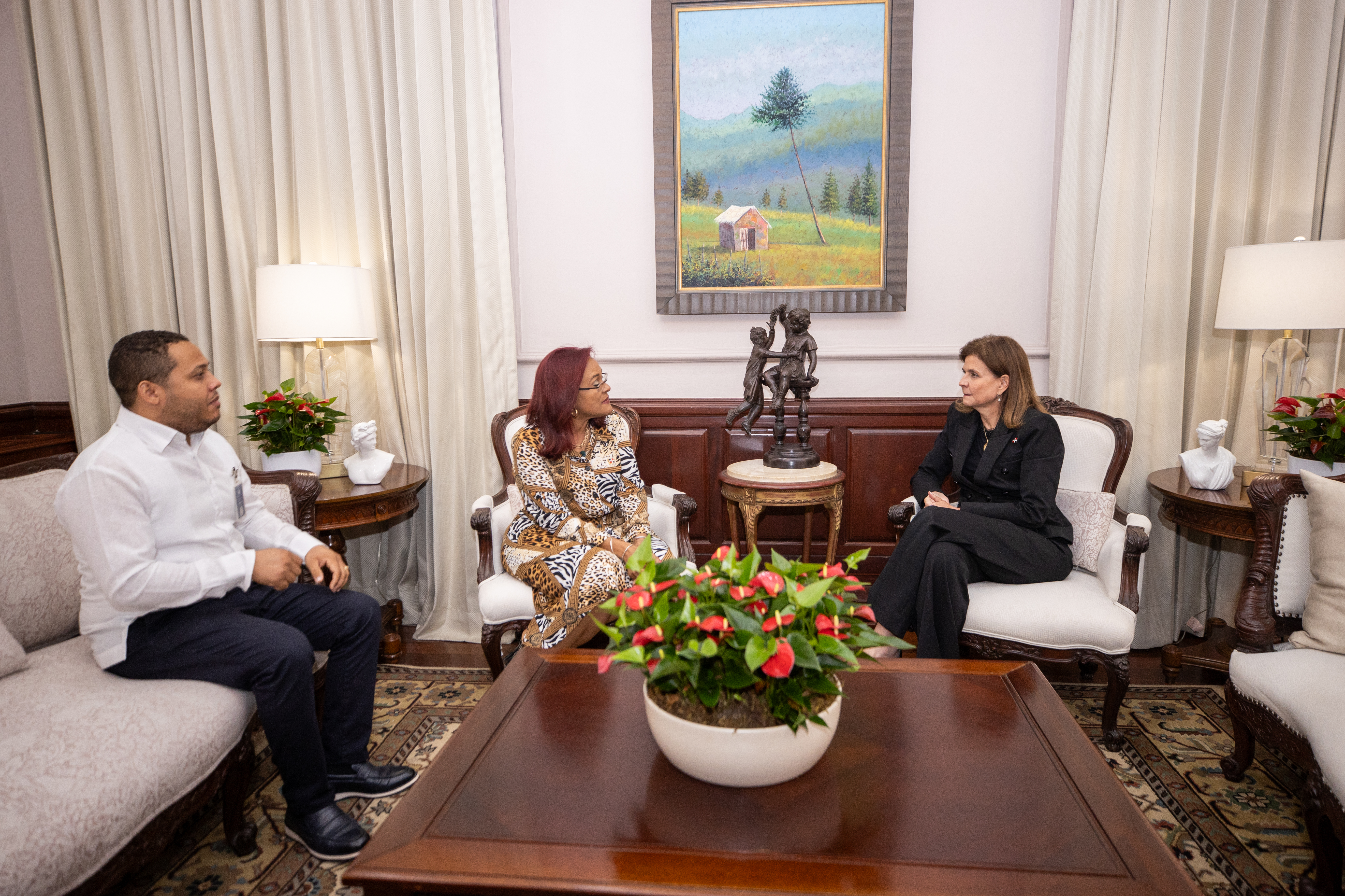 La vicepresidenta Raquel Peña recibió a Teodora Mullix, gobernadora de Samaná. Este acercamiento permitió abordar temas prioritarios para el desarrollo integral de la provincia. Santo Domingo, República Dominicana. 16 de Julio del 2025 VP/ Félix Hirujo
