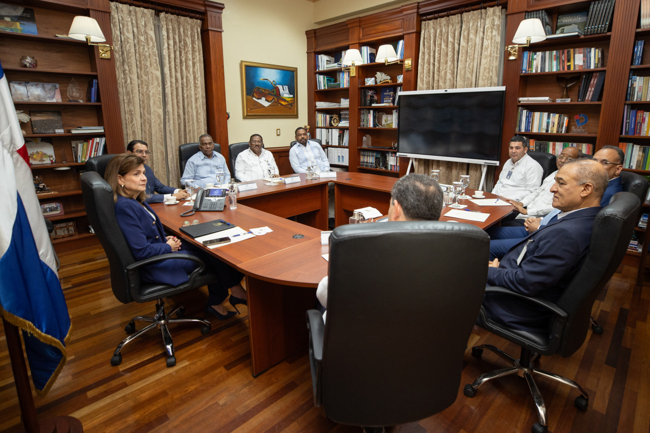 La vicepresidenta Raquel Peña sostuvo un encuentro con el director ejecutivo del Servicio Nacional de Salud, Dr. Mario Lama, y ejecutivos de la institución. Durante la reunión, intercambiaron ideas orientadas a seguir fortaleciendo el sector salud en beneficio de toda la población. Santo Domingo, República Dominicana. 18 de Julio del 2025 VP/ Félix Hirujo