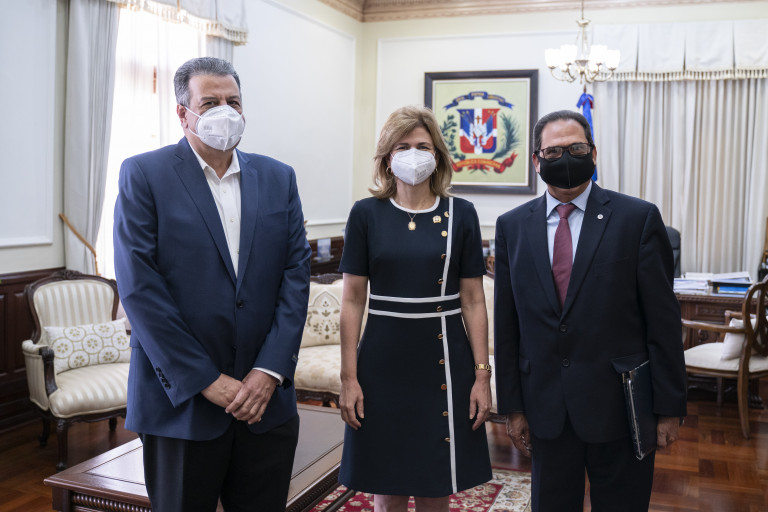 La vicepresidenta Raquel Peña se reúne con el Dr. Manuel Lora, director del Servicio Regional de Salud Norcentral (SRSNC), y el Sr. Silvio Carrasco. Santo Domingo, Republica Dominicana. 02 de Febrero 2021. Vp/ Jhon Escalante