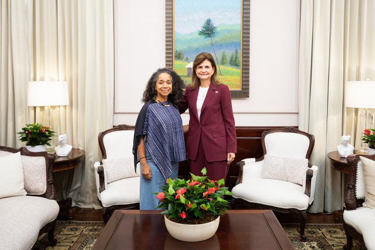 La vicepresidenta Raquel Peña recibió la visita de cortesía de Julissa Reynoso, exembajadora de Estados Unidos en el Reino de España, con quien conversó sobre diferentes temas de interés. Santo Domingo, República Dominicana. 21 Agosto del 2025. VP/ Sintia Méndez