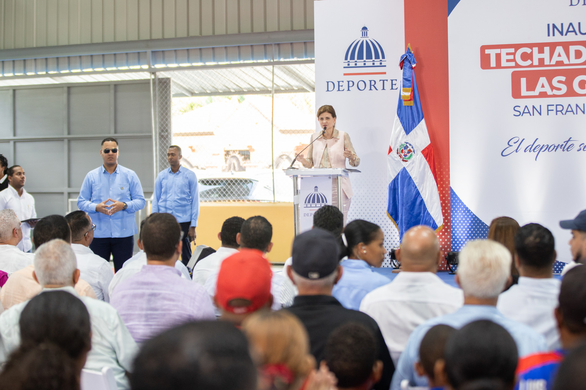 La vicepresidenta Raquel Peña inauguró el techado municipal en Las Guáranas, provincia Duarte, muestrando el compromiso del Gobierno de mejorar la calidad de vida en cada comunidad. Santo Domingo, República Dominicana. 27 de Agosto del 2025 VP/ Félix Hirujo