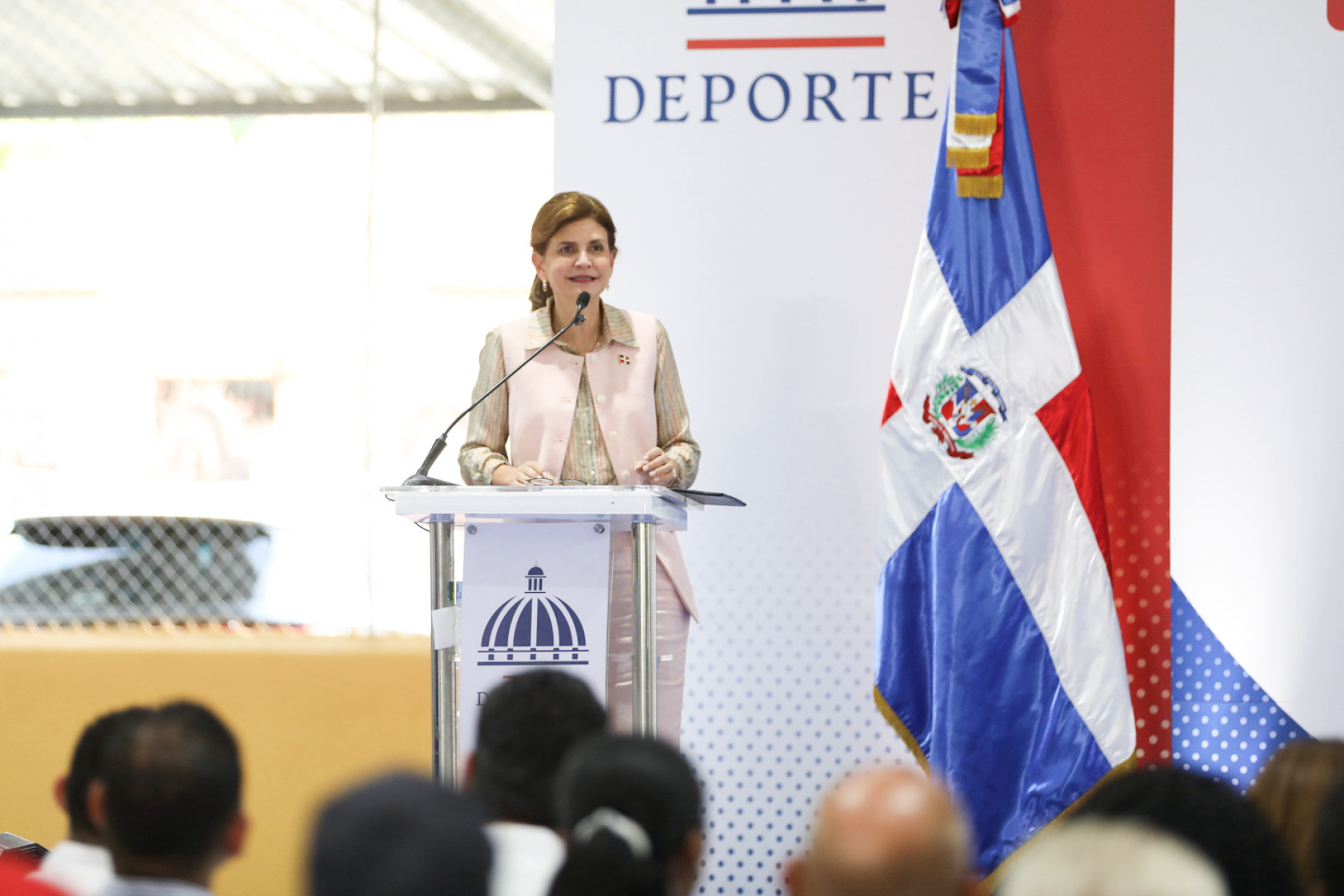 La vicepresidenta Raquel Peña inauguró el techado municipal en Las Guáranas, provincia Duarte, muestrando el compromiso del Gobierno de mejorar la calidad de vida en cada comunidad. Duarte, República Dominicana. 27 Agosto del 2025. VP/ Sintia Méndez