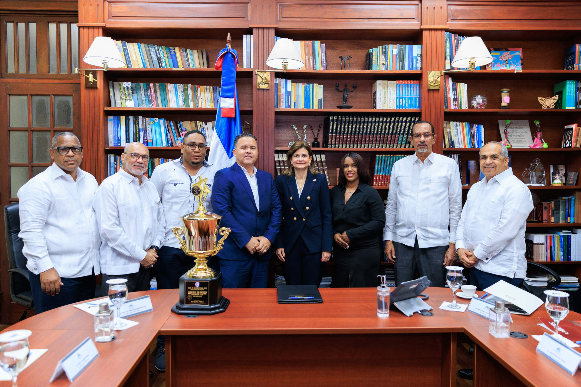 Para conversar sobre los avances del deporte en la región Sur, la vicepresidenta Raquel Peña recibió a jugadores del Torneo de Baloncesto de la provincia San Juan, quienes dedicaron a su persona la competición de este 2025. Santo Domingo, República Dominicana, 18 de Septiembre 2025. Vp/ Amehd Gitte
