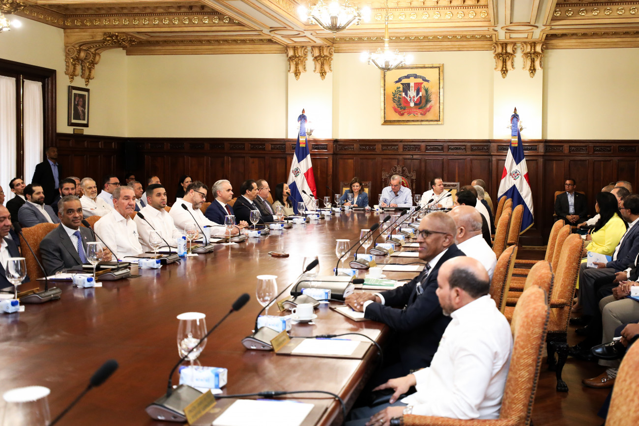 El presidente Luis Abinader, junto a la vicepresidenta Raquel Peña, encabezó la reunión del Consejo de Gobierno en el Palacio Nacional, en el se pasó balance de la ejecución presupuestaria y del avance de los proyectos prioritarios del Gobierno central. Santo Domingo, República Dominicana. 09 Octubre del 2025. VP/ Sintia Méndez