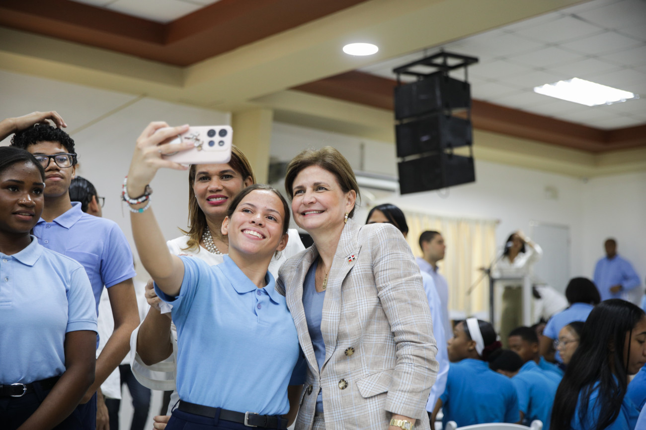 Durante una visita a La Romana, la vicepresidenta Raquel Peña compartió con estudiantes de nivel secundario, con quienes conversó sobre sus sueños, motivaciones y el deseo de contribuir al desarrollo de su comunidad.La Romana, República Dominicana. 10 Octubre del 2025. VP/ Erly Morales