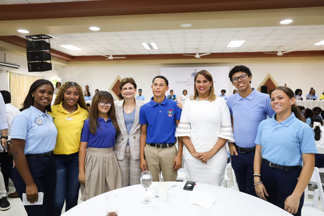 Durante una visita a La Romana, la vicepresidenta Raquel Peña compartió con estudiantes de nivel secundario, con quienes conversó sobre sus sueños, motivaciones y el deseo de contribuir al desarrollo de su comunidad. La Romana, República Dominicana. 10 Octubre del 2025. VP/ Sintia Méndez