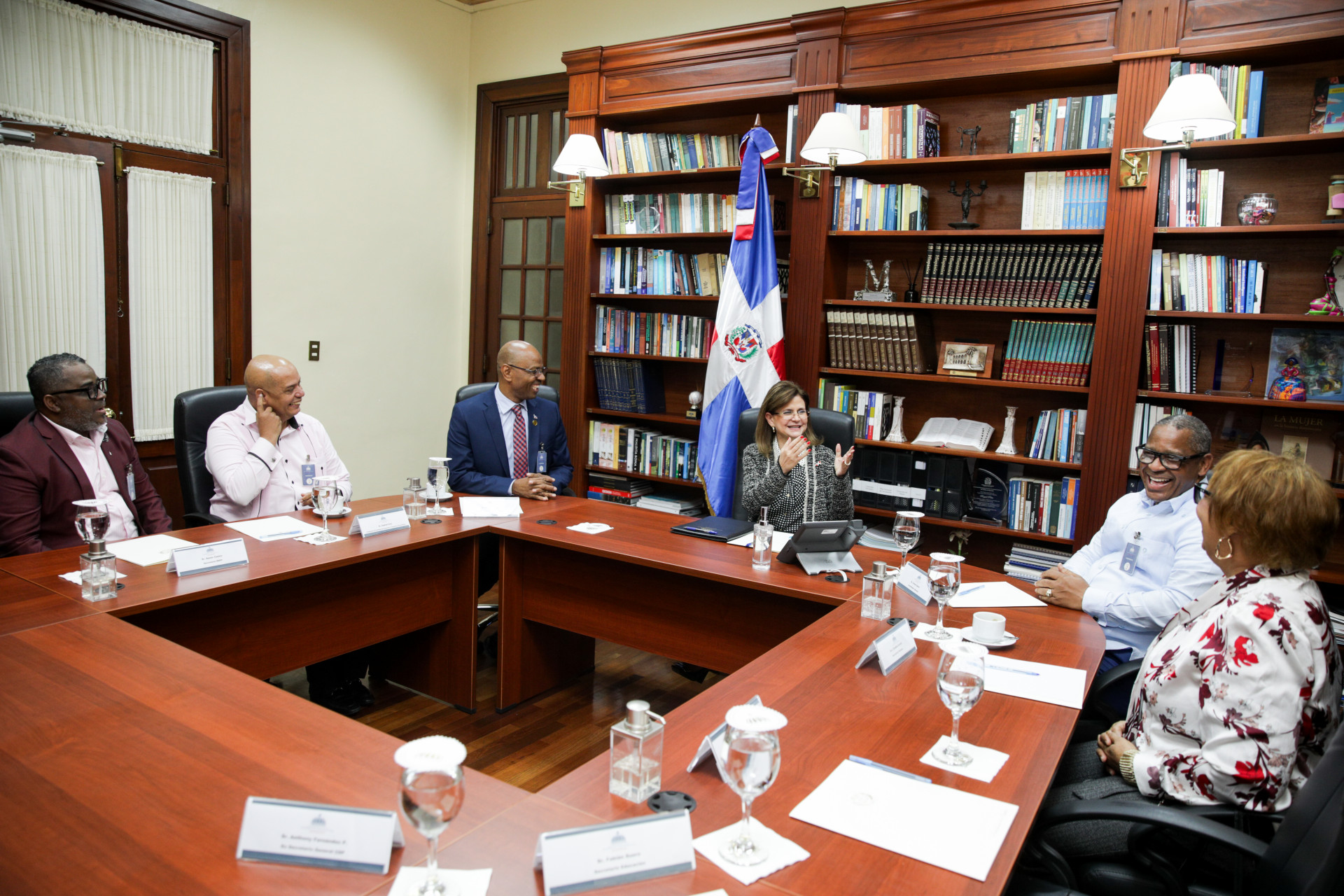 La vicepresidenta Raquel Peña conversó con el Comité Ejecutivo del Colegio Dominicano de Periodistas, encabezado por su presidente, Luis Pérez. El encuentro permitió abordar iniciativas orientadas a continuar fortaleciendo el ejercicio ético y la comunicación responsable en el país. Santo Domingo, República Dominicana. 27 Octubre del 2025. VP/ Erly Morales
