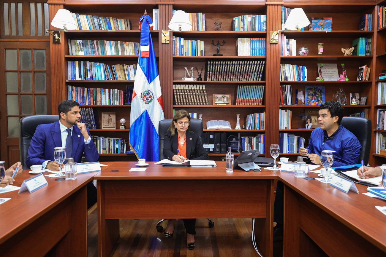 Como parte del seguimiento a la visita realizada a San Cristóbal, la vicepresidenta Raquel Peña sostuvo una reunión con autoridades nacionales y locales para dar continuidad a las acciones vinculadas al saneamiento de cañadas y otras obras prioritarias en beneficio de los residentes de la zona. Santo Domingo, República Dominicana, 28 de Octubre 2025. Vp/ Amehd Gitte