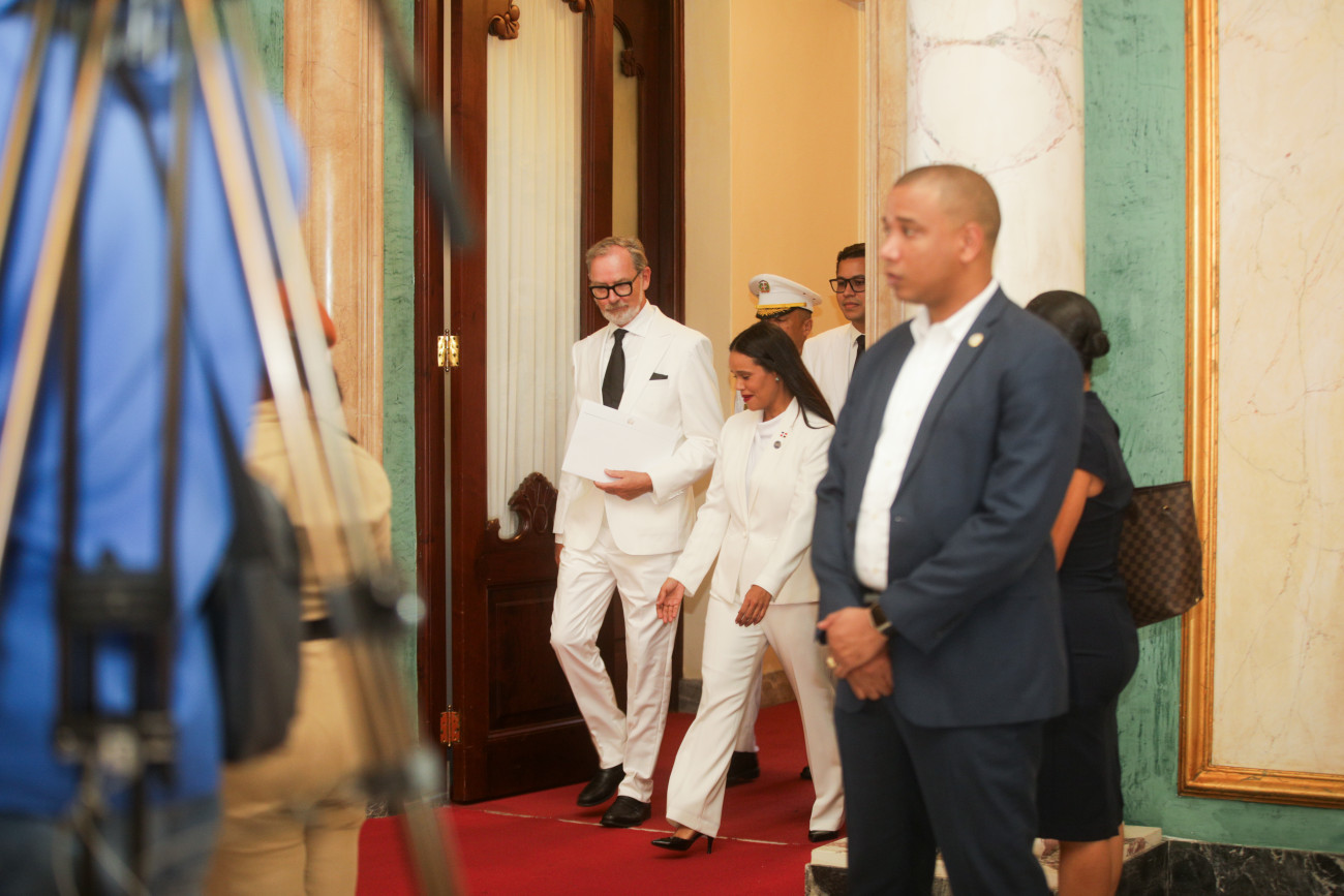En el Palacio Nacional, el presidente Luis Abinader y la vicepresidenta Raquel Peña presidieron el acto de recepción de las cartas credenciales de los nuevos embajadores designados ante la República Dominicana. Santo Domingo, República Dominicana. 19 de Noviembre del 2025. Erly Morales