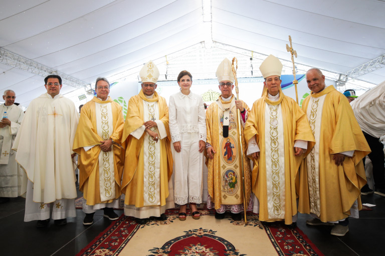 La vicepresidenta Raquel Peña participó en la eucaristía con motivo de la XIV caminata «Un Paso por mi Familia 2025», realizada en Santiago y organizada por la Vicaría de Pastoral Familiar de la Arquidiócesis de Santiago de los Caballeros. Santiago, Repbúlica Dominicana. 23 de Noviembre del 2025. VP/Erly Morales