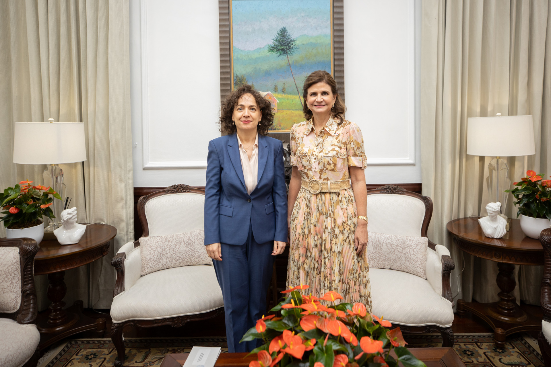 La vicepresidenta Raquel Peña recibió hoy en su despacho a la Excelentísima embajadora del Reino de España en la República Dominicana, Lorea Arribalzaga, quien asumió recientemente sus funciones diplomáticas en el país, acompañada del ministro consejero Ignacio Sánchez de Lerín. Santo Domingo, República Dominicana. 7 de Octubre del 2025 VP/ Félix Hirujo