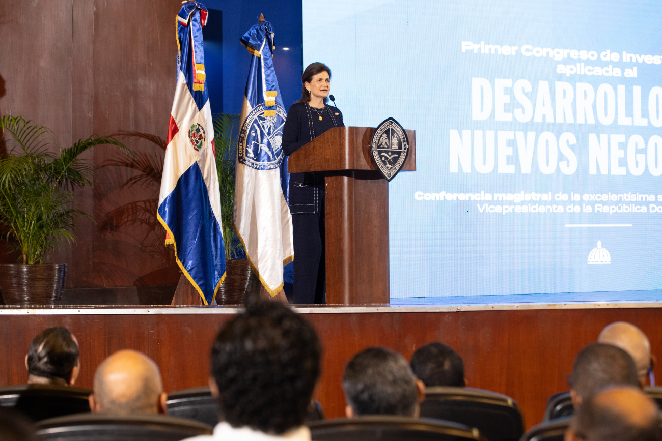 La vicepresidenta Raquel Peña encabezó el Primer Congreso de Investigación Aplicado al Desarrollo de Nuevos Negocios, realizado en la Universidad Autónoma de Santo Domingo. Santo Domingo, República Dominicana. 13 de Noviembre del 2025 VP/ Félix Hirujo