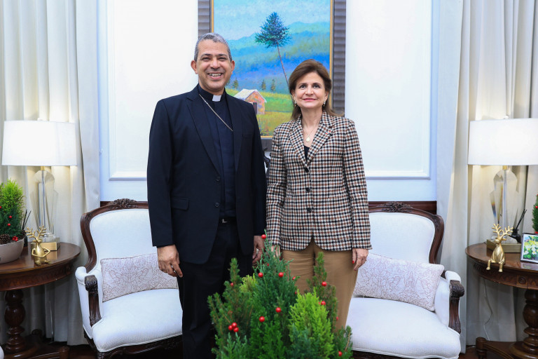 Continuando con su agenda de este lunes, la vicepresidenta Raquel Peña recibió a monseñor Carlos Tomás Morel Diplán, Arzobispo Coadjutor de la Arquidiócesis de Santo Domingo. Durante el encuentro conversaron sobre temas de interés y sobre aspectos vinculados a su misión pastoral. Santo Domingo, República Dominicana, 1 de Diciembre 2025. Vp/ Amehd Gitte