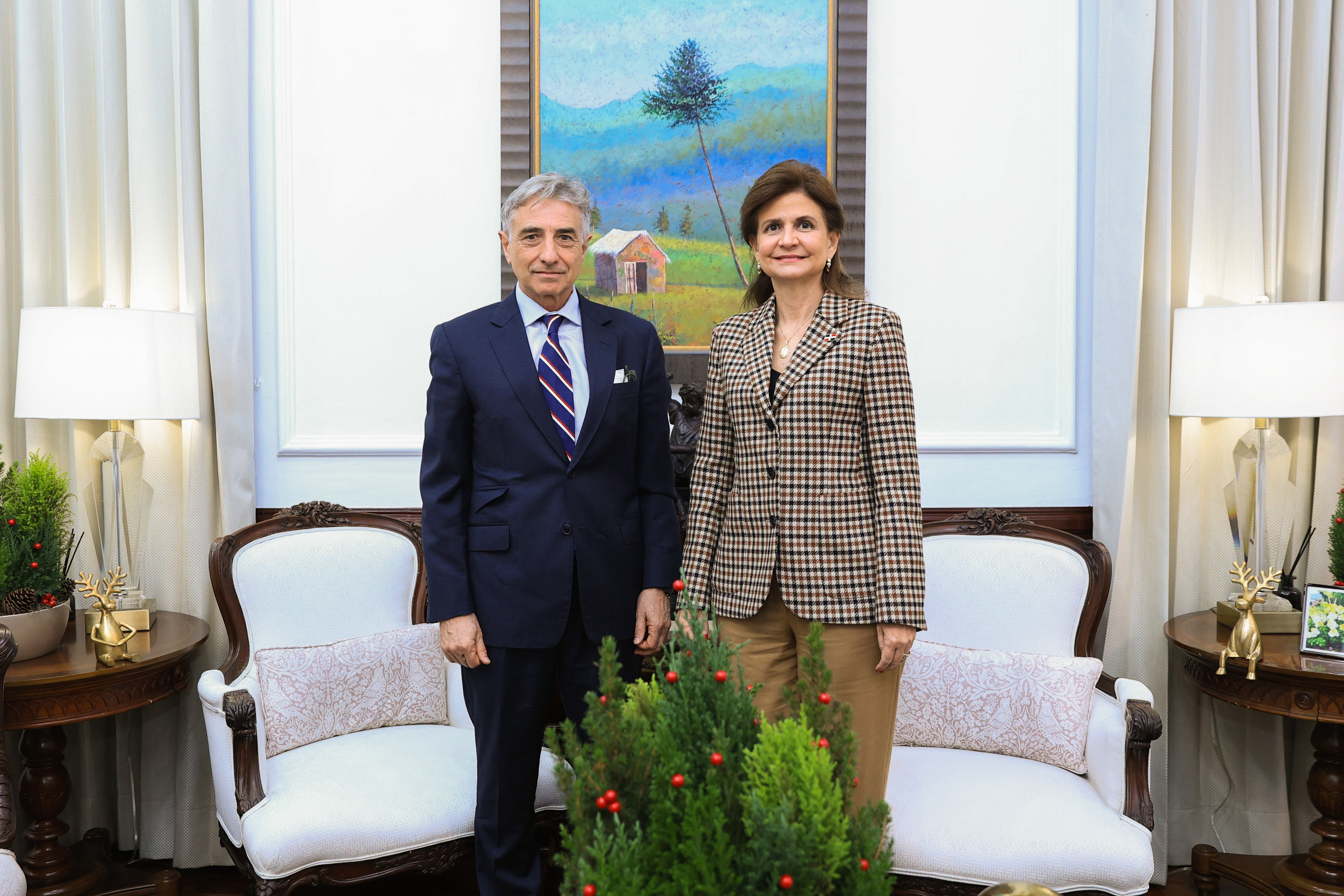 En su primer encuentro luego de presentar sus cartas credenciales, la vicepresidenta Raquel Peña recibió a S. E. Raúl Fuentes Milani, embajador y jefe de la Delegación de la Unión Europea en la República Dominicana, con quien abordó una agenda de trabajo conjunta para seguir fortaleciendo la relación entre la Unión Europea y el país. Santo Domingo, República Dominicana, 1 de Diciembre 2025. Vp/ Amehd Gitte