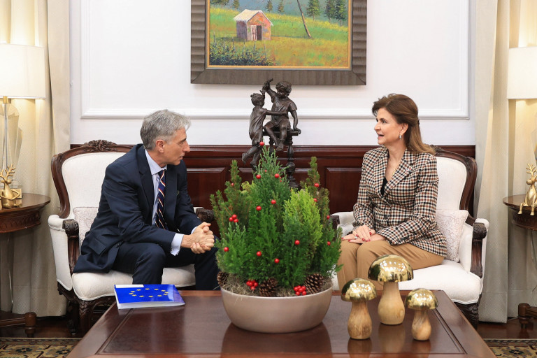 En su primer encuentro luego de presentar sus cartas credenciales, la vicepresidenta Raquel Peña recibió a S. E. Raúl Fuentes Milani, embajador y jefe de la Delegación de la Unión Europea en la República Dominicana, con quien abordó una agenda de trabajo conjunta para seguir fortaleciendo la relación entre la Unión Europea y el país. Santo Domingo, República Dominicana, 1 de Diciembre 2025. Vp/ Amehd Gitte